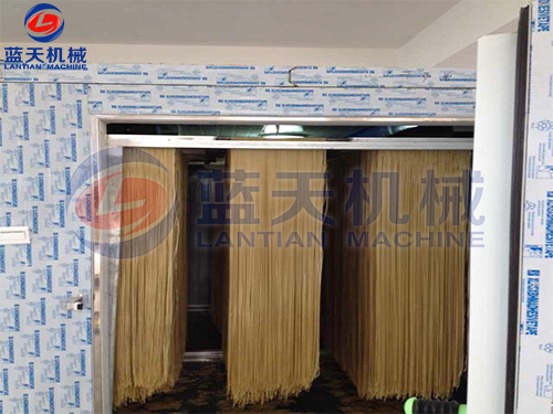 4.溫散熱:經過主干燥階段,面條大部分水分已被脫去,面條的組織已被基本固定,此時只需要空氣的流動作用,緩慢減小面條的本身溫度,并繼續脫去面條的一小部分水分,達到產品質量標準所含水分要求,烘干時間約控制在90分鐘,溫度在26-28度,空氣濕度在50-60%RH。