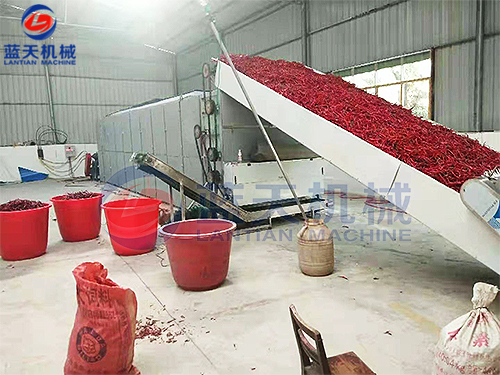 湖南網帶辣椒烘干機烘干現場